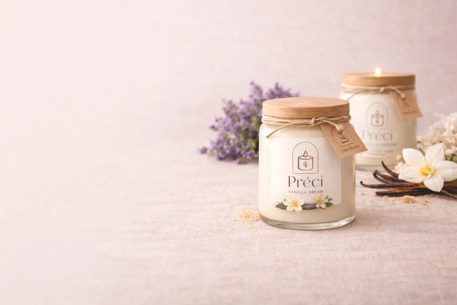 Nến Préci được làm từ sáp thiên nhiên và tinh dầu hữu cơ, không chứa paraffin hay hóa chất độc hại.